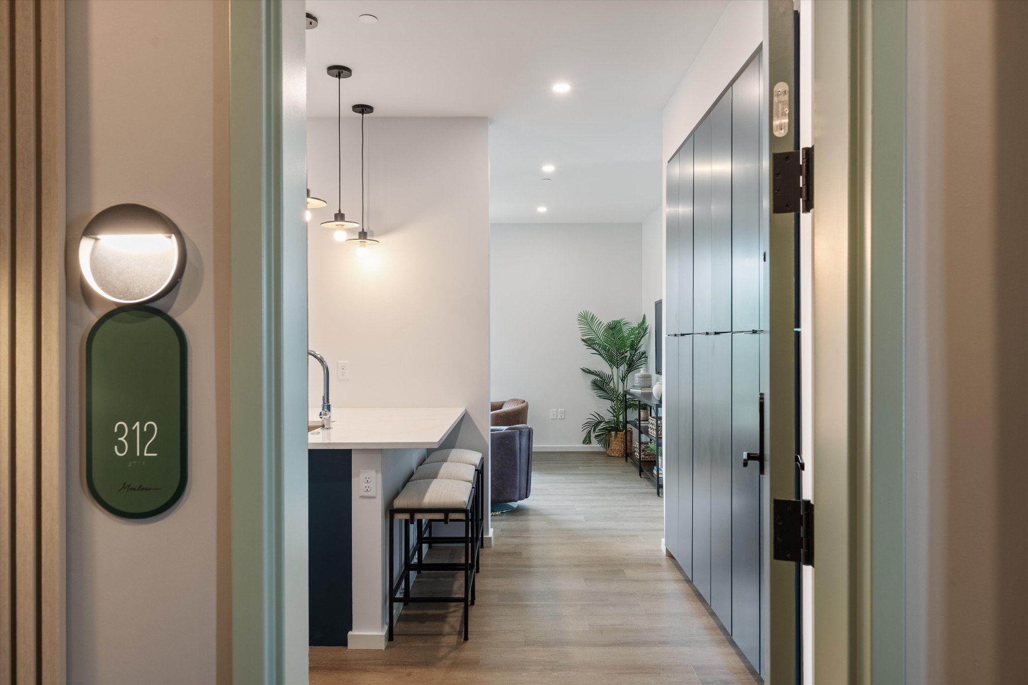 This one-bedroom plus flex space condo at Maslow offers a sleek, modern kitchen with generous cabinetry, seamlessly connecting to a bright living area with floor-to-ceiling windows. The flex bonus space is ideal for a home office or can accommodate a Murphy bed for guests. The spacious primary be...