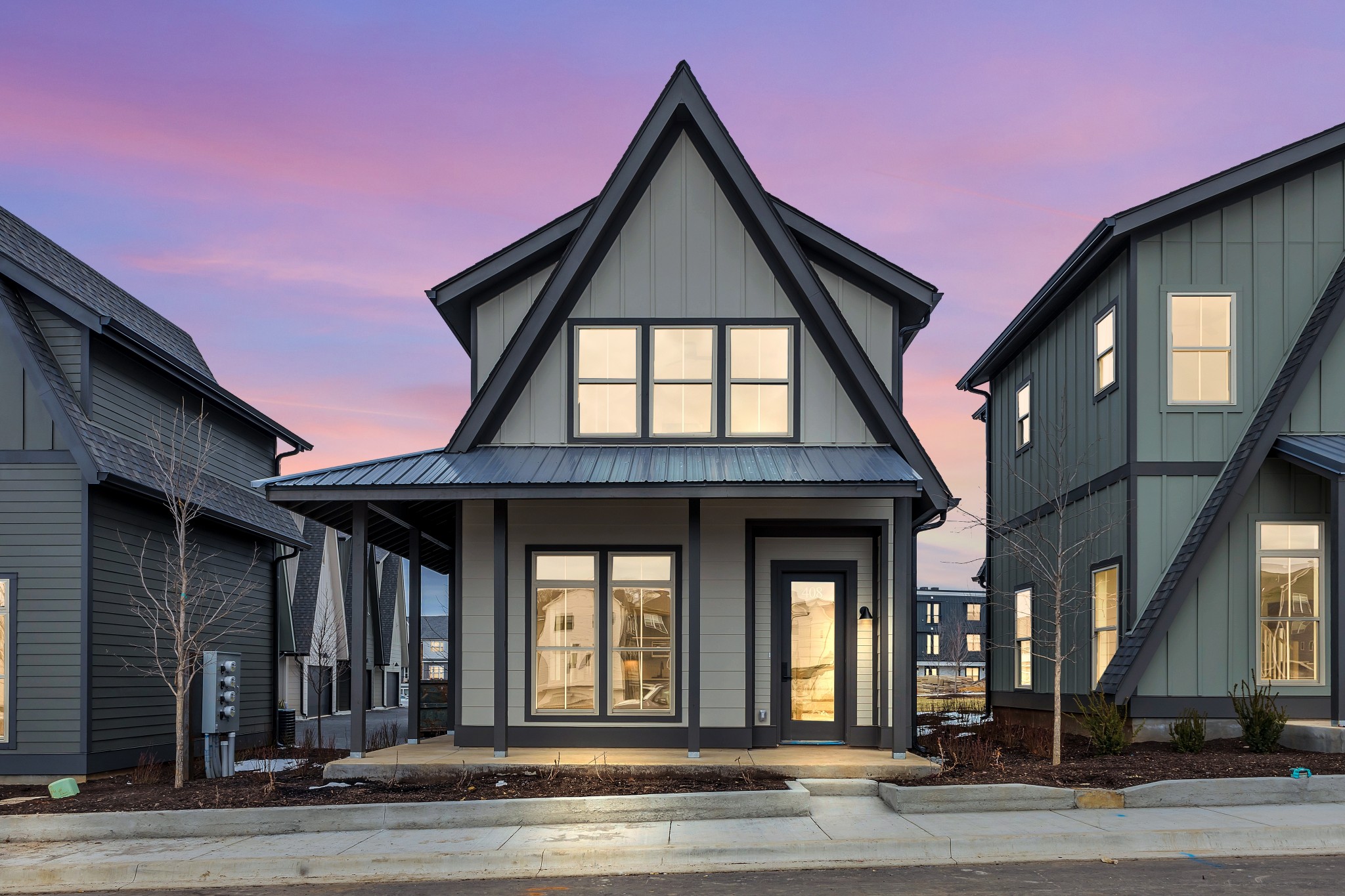 Tucked away in it's own little enclave of Charlotte Park, just a few blocks from an emerging retail/restaurant district on Robertson Rd and a bike ride down James Ave to Centennial & 51st and the heart of the Nations, The Woods blends convenience with privacy; nature with style. Imagine a developer committed enough to the importance of landscaping to obtain certified arboretum status for a new construction subdivision. Imagine an architect designing a neighborhood with intent, rather than just checking the boxes. Imagine no more, it's happening now. The first nine homes of the next phase at The Woods are ready to go. Featuring architecture reminiscent of historic Craftsman Tudors and mid-century-modern A-frames, with floorplans that satisfy today's demands. This 2 bedroom plan offers 10 ft ceilings on the main level, wood floors throughout, designer kitchen with island and large transomed windows along the front. Upstairs offers a dual bedroom suites with nice closets and a built in bookshelf in the hallway. A covered wrap around front porch connects to sidewalks in front as well as a side porch entrance.