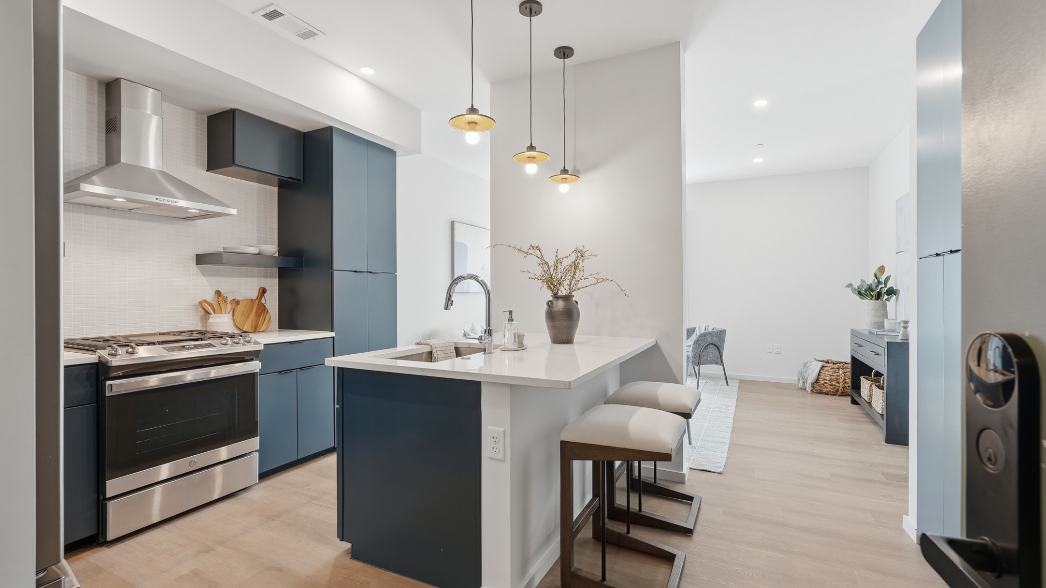 This one-bedroom + flex space residence at Maslow blends modern design with an unbeatable, walkable lifestyle in the heart of Wedgewood Houston. The sleek kitchen, complete with generous cabinetry and clean, contemporary finishes flows effortlessly into a light-filled living area framed by floor-to-ceiling windows.