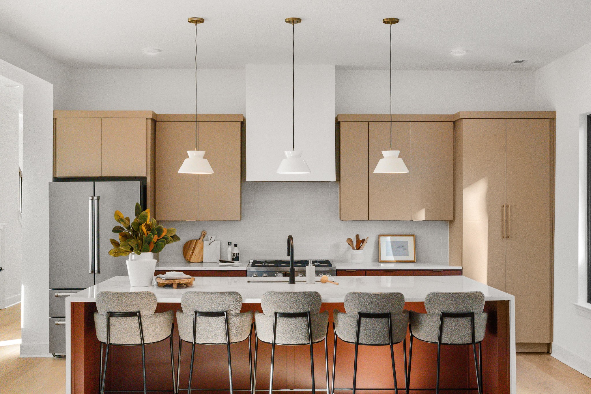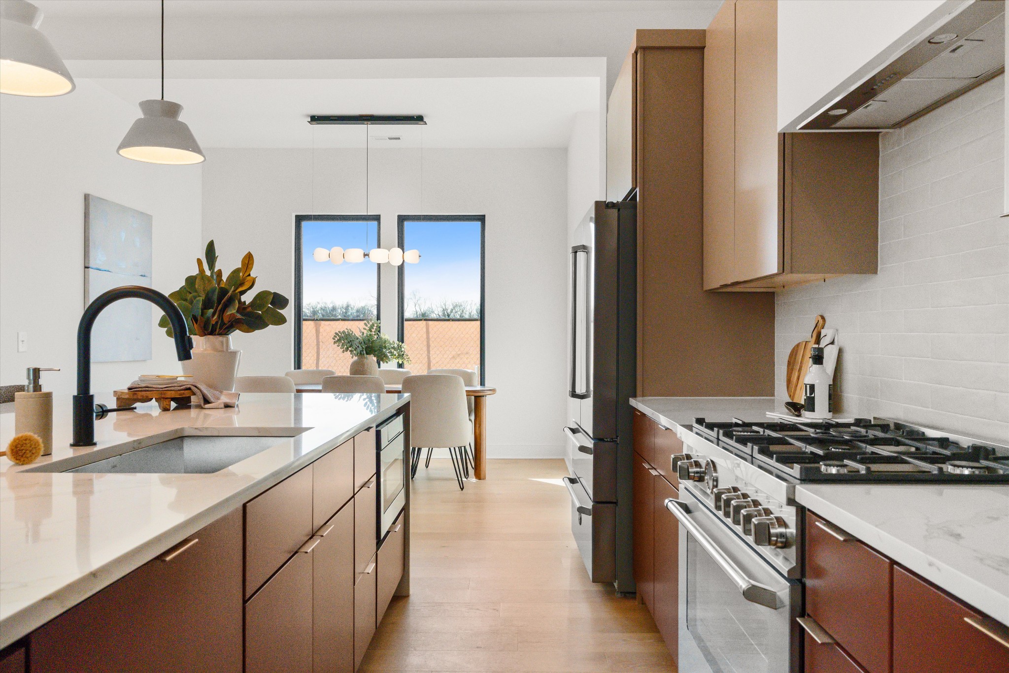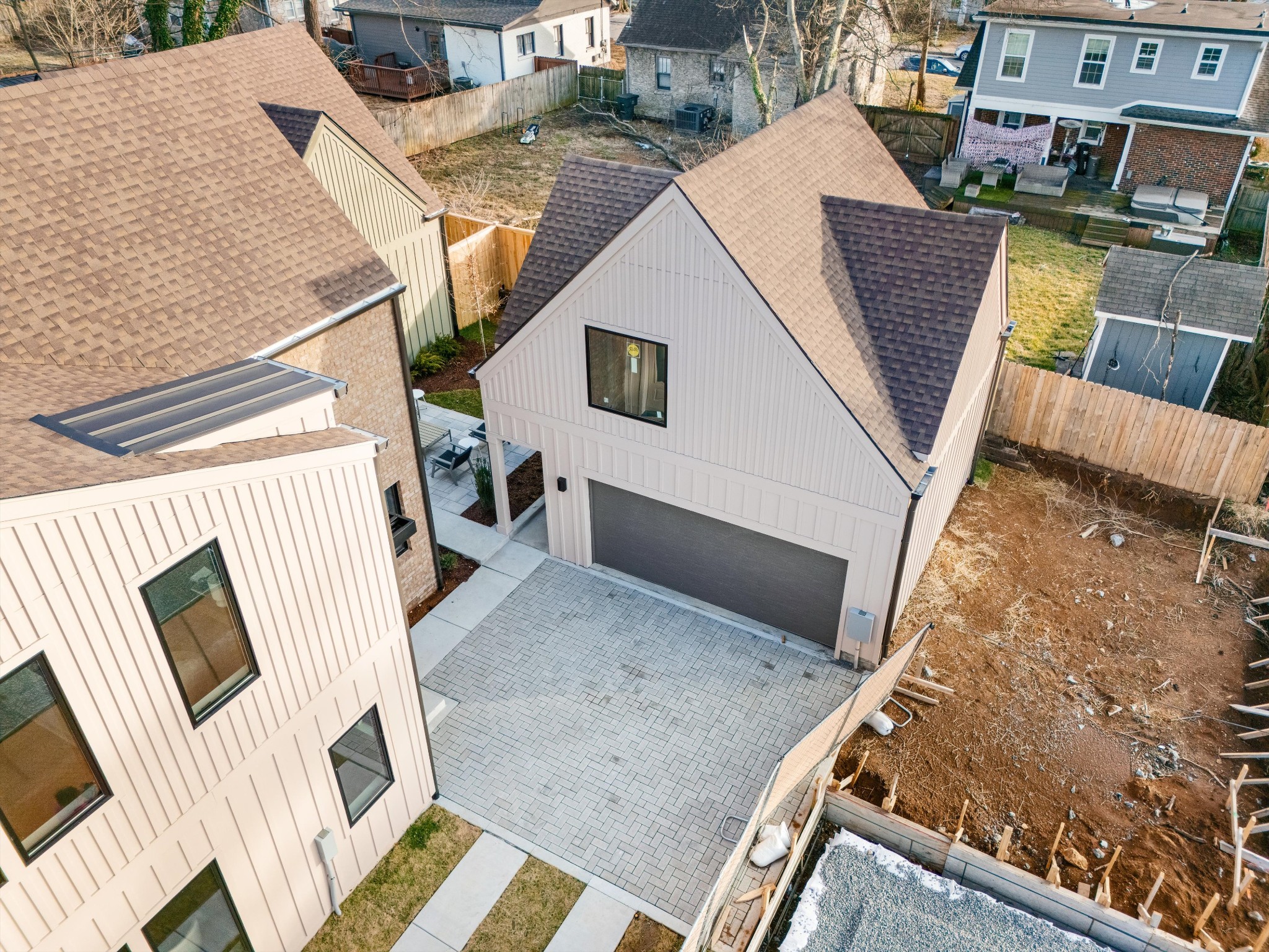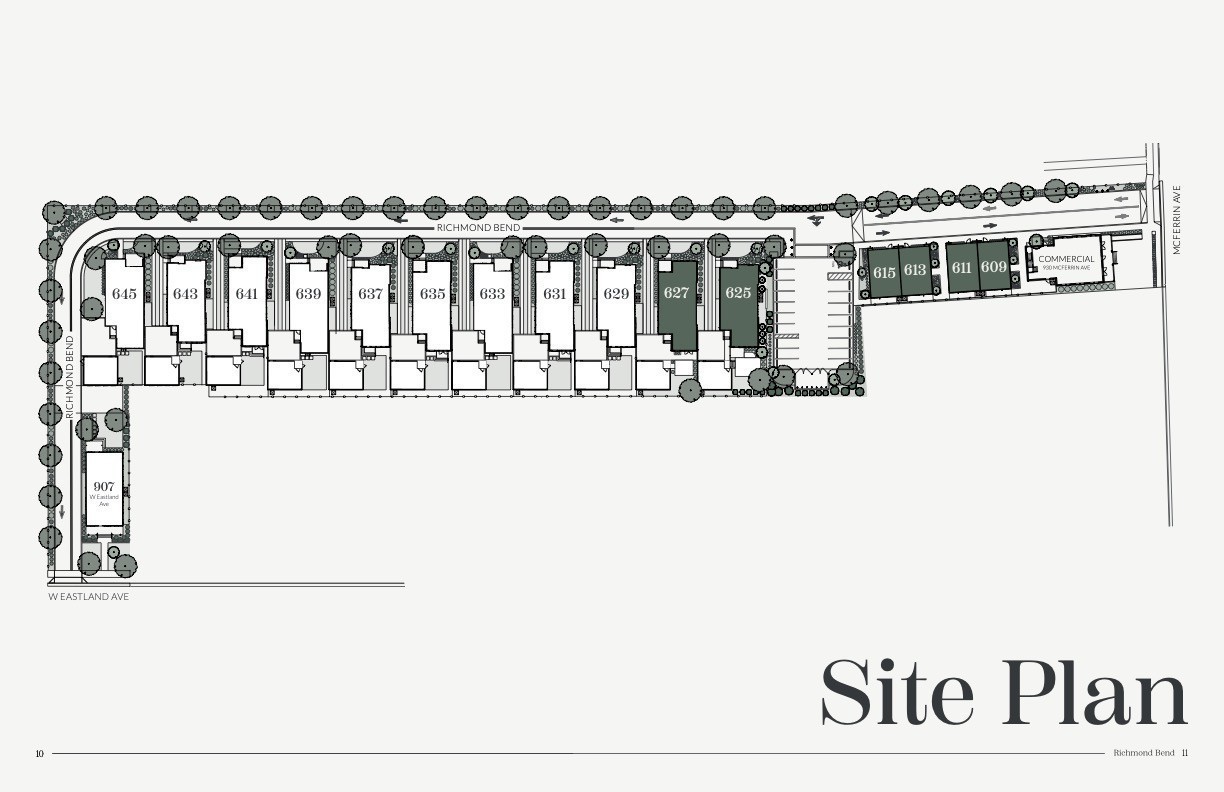 Located just down from the intersection of West Eastland & McFerrin Ave, Richmond Bend is an exciting new mixed-use community from Core Development in the historic Greenwood neighborhood of East Nashville. Steps from amazing and award-winning restaurants and shops, such as Mas Tacos, Pharmacy Burger, Lyra, Peninsula, Framework, Bookshop and more. Richmond Bend leads with a brand new restaurant at its McFerrin Ave entrance that will be home to Bar Cala Cala, the next culinary endeavor from the team behind Xiao Bao. Just behind that will be a small group of luxury townhomes (SOLD) and then the road reduces to a one way private lane where you will find 627 Richmond Bend. Designed by Pfeffer-Torode Architecture with interiors by Design Object and landscaping by Firma the project is underscored by sophisticated finishes and classic details throughout. This home features a primary suite on the main level along with an open living area that opens to a private rear yard with hardscape patio that leads to the detached Dadu over the garage. The well appointed Italian-influenced kitchen features a Bertazzoni appliance package, oversized island and a hidden pantry. The upstairs opens to a large gathering room with vaulted ceilings, 3 secondary bedrooms, a separate office and generous laundry room. The detached garage in back will include a finished Dadu over it that offers an additional 417 SqFt and full bath